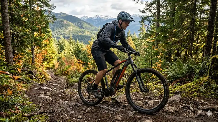 Torque sensors measure pedal effort for proportional assistance—feels like natural leg extension, not on/off cadence sensors. Samsung battery maintains cold-weather capacity. Lightweight at 26 kg for efficient trail riding.